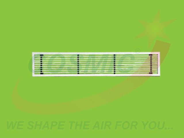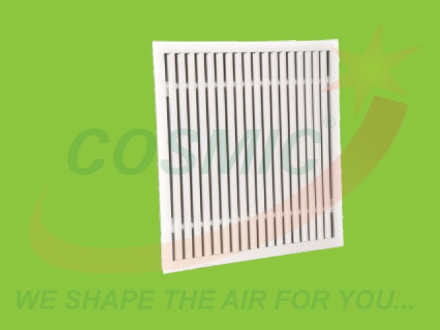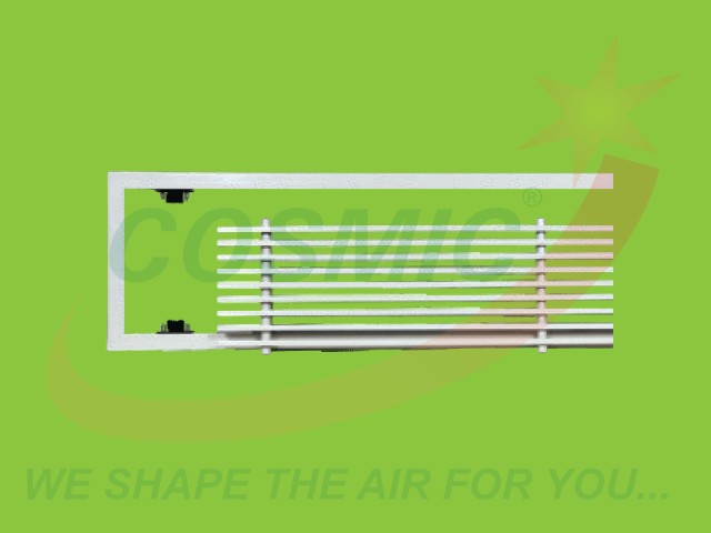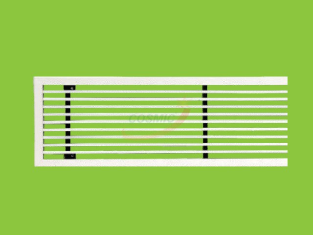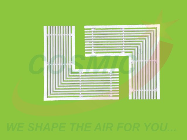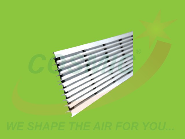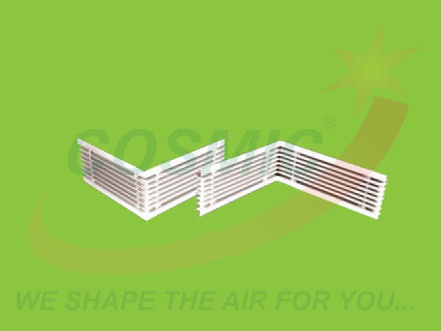 Extruded aluminium constructoin. Frames with flat frontal face 16mm, 20mm, 25mm or 30mm and inner blades of 0, 15, 30, 45 degree deflections. Avaliable with or without end flanges as well as of standard or non-standard sizes. Optional mittered corners availableThe models available in linear fixed bar Grilles are one way type/two way type, Curved Grilles and removable core Grilles