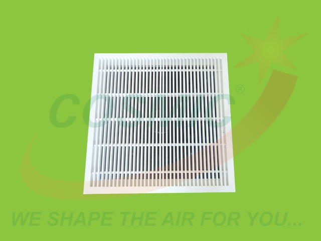 Extruded Aluminium powder coated grille with or without collar dampers available in 0°, 15° and 30° deflection and also in one way or two way models. Collar dampers are available in extruded aluminium powder coated finish or in high quality galvanized steel. Available in any standard or non — standard sizes.