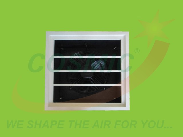 Fans used in this system are high quality fan with E.C. Motor. The external motor of the axial fan unit is directly integrated with axial impeller. Fan with finger guard on both sides for safety. The fan unit is mounted with wall ring and round nozzle to increase the fan static.