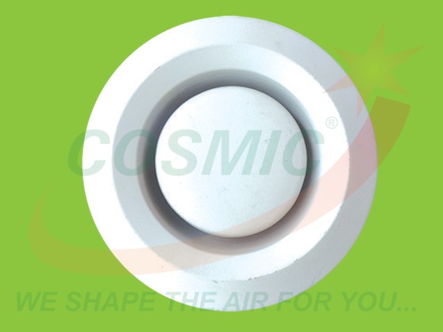 Frame and disc are made of galvanized steel. Disc attached to the frame by means of threaded rod. Air flow can be adjusted by regulating the Disc up or down. Available in 100mm, 150 mm and 200 mm inner sizes.