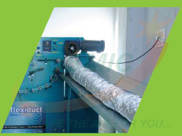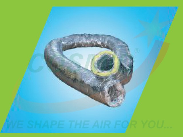 Air Flow Volume in M3/hr Cosmic Flex is used for Low / Medium / High pressure air conditioning and ventilating systems in all Commercial, Industrials, Hospitals, Hotels, Shopping Malls, Software Companies and Office Buildings. Cosmic Flex ducts are Class I air duct manufactured by the Australian Technology and made of Aluminium laminated Double film permanently bonded to a coated spring tough steel wire helix. The Outer Jacket is made of double laminated film which acts as a vapour barrier as well. This range has been developed to minimize the heat loss or heat gain resulting from temperature differential between the air flow and the surrounding ambient air Cosmic flex ducts are extremely durable, Strong and will maintain dimensional stability in fully extended position and also a fire resistant with flexibility of being compressed to 10% of its extended length.