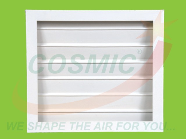 Frame with flat frontal face of 30 mm and inner leaves of aluminium sheets connected by means of metal screws with the frame. Recommended along with exhaust fan installation louvers to open when fan is in operation at duct branches. Designed to prevent rain penetration. Standard or non-standard sizes also available. STANDARD FINISHES