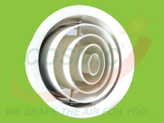 Jet Diffusers are to be used for very high ceilings like Airports, Cinema theatres, Shopping malls, Exhibition halls and high roofing industries. For ceiling mounting supply of large quantities of air or side wall installation with very long throws. High air handling capacity with low noise level.Mounting
