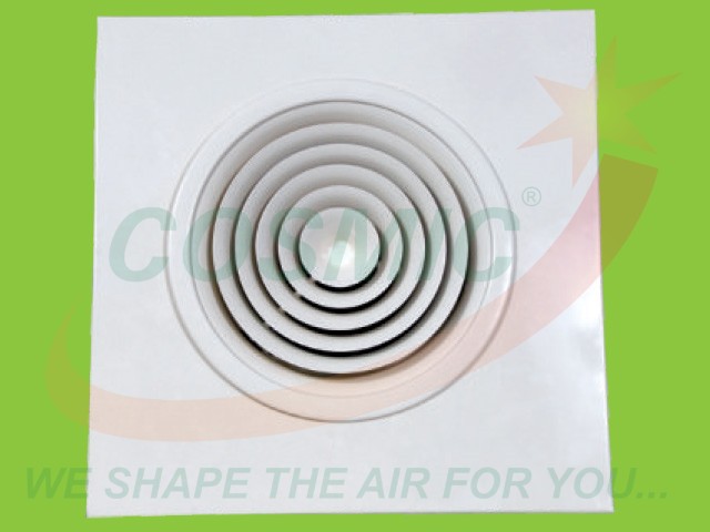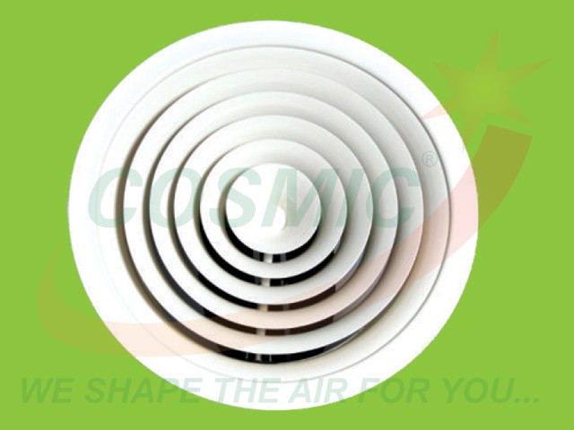 modular ceiling application, where a ceiling tile can be replaced by a round diffuser of any neck size.