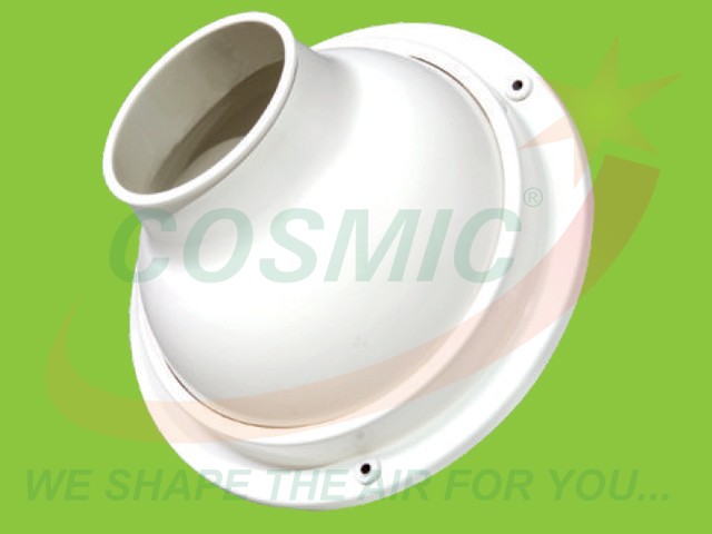 External ring with a flat circular and spherical inner nozzle manually adjustable to any desired angle within ± 40°. Using the mechanical principle of ball and socket joint made of aluminium and available in the sizes of Ø 75, Ø 100, Ø 200, Ø300 Et Ø400mm respectively with or without collar dampers. STANDARD FINISHES